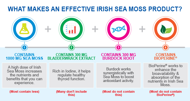 It’s hard to believe, but most companies slap on a label that says ‘Irish Sea Moss Supplement’, often without even mentioning how much of the key ingredients are in each pill or without actually including the amount they claim.