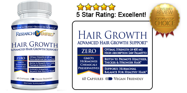 The ingredients in Research Verified Hair Growth are 100% natural and have been shown to be effective in clinical studies. This dual-action formula does things that other hair growth supplements simply can’t. First, it decreases levels of follicle-blocking hormones in your body to stop hair loss. Second, it stimulates the scalp and provides the necessary nutrients for new hair growth.